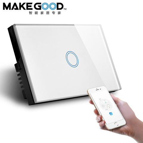 US Standard 1 Gang Smart Home Phone App Control Touch Screen Wifi Light Switch