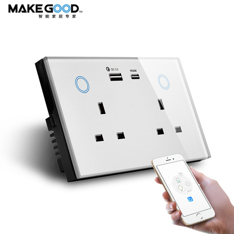 MakeGood British x 86 من الكريستال لوحة زجاجية عالمية واي فاي مآخذ مزدوجة على الحائط مع شاحن USB PD 20W