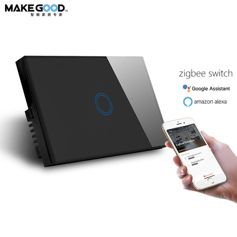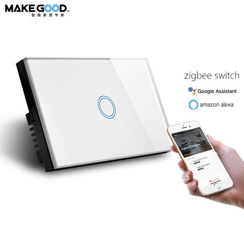 AU/ארה"ב תקן מגע זכוכית פנל 1 כנופיה חכם Zigbee אור מתג תואם Alexa ו-google בית עם SAA אישורים