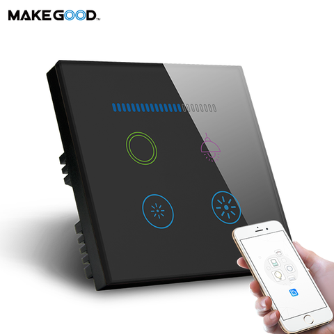 Makegood Uk British Standaard Glazen Paneel 240V 400W Rgb Kleurindicator Tuya Smart Wall Touch Wifi Dimmer & 1 Bende Lichtschakelaar